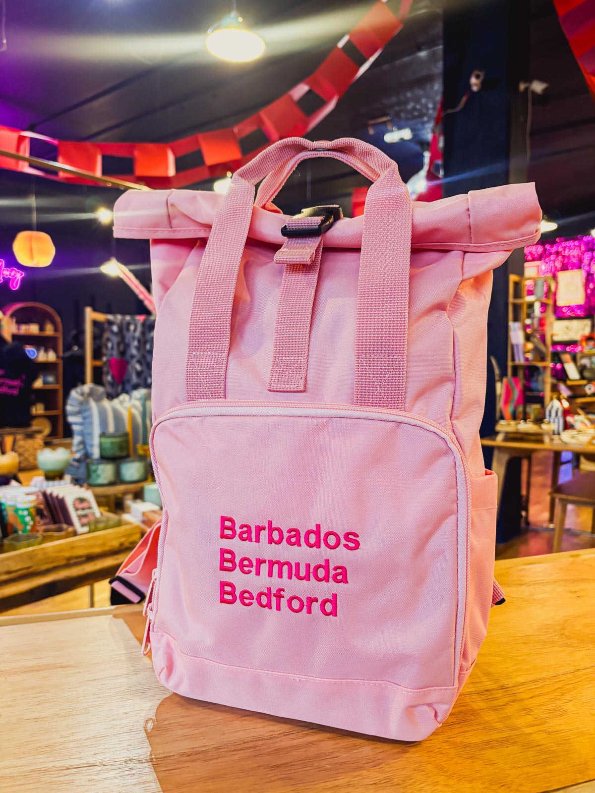 Barbados Bermuda Bedford Backpack – Pink with Pink Lettering