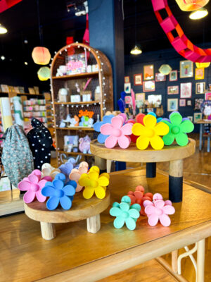 Channel your inner goddess with these bold, blooming beauties. Straight outta the swinging sixties, these daisy clips add instant flower power to any ‘do. They’re groovy, colourful, and full of retro charm.